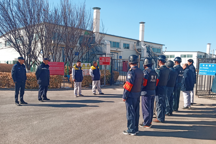 华腾科技园作为全市应急物资、化工产品重要集散地,全国两会前夕,华腾化工从安全保卫、安全管理、信访稳定等多个方面进行了全面部署和系统摸排。领导班子成员带头到重点部位安全检查;组织公司中控室人员进行“周界防侵入系统”等专业培训;对易制爆库房进行封闭管理并张贴封条,联合属地派出所组织开展甲类库反恐应急演练;认真落实集团信访维稳、接诉即办相关工作要求,切实将安全保稳定工作落实落地。