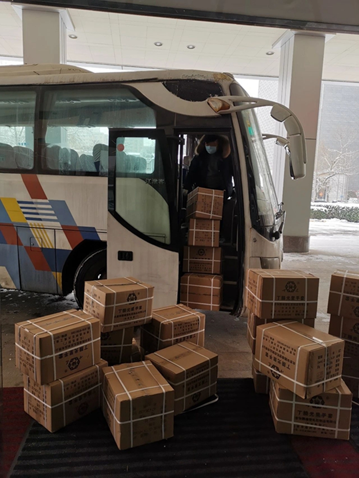 白云杉组织市场营销部的职工,放弃休息不打烊,每个客服人员每分钟都接待几个不同客户,几乎都没有吃饭的时间,从早上一直到深夜,累计接待群众访客10000多人,累计打包发件1500多件,发出医用手套30万只,防化手套8万多副。这其中一部分作为援助物资发往了北京和湖北相关定点诊疗医院和单位;一部分作为家庭个人防护用品,送达了千家万户。手套作为隔离病毒,手部防护的利器,顺利到达亟需的地方,保护一线医务工作人员和大家的双手。白云杉等销售人员以自己连日的奋战,为战胜疫情做出了平凡人应有的贡献!