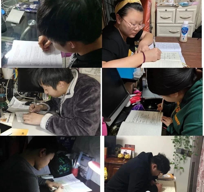孩子们准时上网课,随后认真地完成课后作业,每一笔每一划,都代表着认真,代表着不负老师们的苦心。