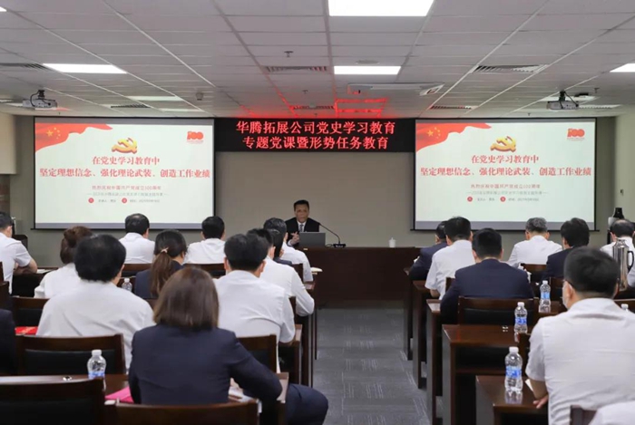 5月10日,米乐官方网站_米乐(中国)股份有限公司总经理助理,华腾拓展公司党总支书记、董事长李泳以《在党史学习教育中坚定理想信念、强化理论武装、创造工作业绩》为题,向全体党员及职工代表讲授党史学习教育专题党课。