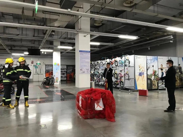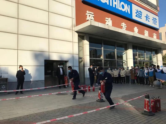 演练结束后,还组织了消防基本技能实操技能评比,采取同场竞技方式,华腾拓展公司和迪卡侬抽点消火栓实操各一组、灭火器实操各4组,共20人参加实操的评比,通过比拼“灭真火、真出水”,达到“小火会用灭火器、大火会用消火栓”的要求,使每一位参加人员成为“见火不慌、抬手就灭”的准消防员,检验了前期“一警六员”消防基本技能实操实训的成果。